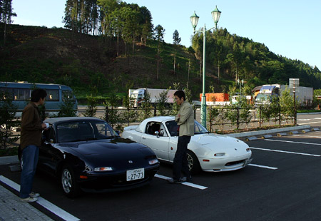 そうこうしている間に、軽井沢へ近づきます。この辺りに来ると回りにロドスタが増えてきますねぇ。 前を走るのもロドスタ。コンビニに止まってるのもロドスタ。向こうから来るのはカイエン(!) お〜流石に軽井沢良い車が走ってますね。ま 今日はロドスタの日ですがね。 朝早いとはいえ、地元から約2時間弱で軽井沢入り出来ることが判ったSP氏は、 なんだ〜早朝ドライブコースに使えるンじゃん?との事。でもその時間だとお店全部締まってるから デートコースとしてはどうでしょう?? |