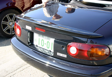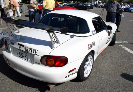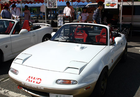 会場入りの瞬間です。SP氏にカメラを持たせて「今だ! 撮れ〜」とか命令(^^; 去年はカメラを 忘れていたので今回はいっぱい撮るのです(笑) なんか見覚えのある車が前を走ってるなぁ〜と思ったら、おやぢレーシングの皆様でした(^^; お〜M2 1001です。ナンバーも1001ですな。こういう拘りってやっぱ皆さんあるんですねぇ… しかし、車出た瞬間「おやぢレーシングだぁ」と思わずつぶやいてしまったのは失敗(^^; <失礼だったかも さっそくで満子号を囲んで、「コレ軽いHTなんだよね〜」「コレに直接値段書いてフリマに出そうよ」とか 某堂堕のしゃちょみたいな事を口々に言ってます(笑) さすがおやぢですねぇ(笑) |