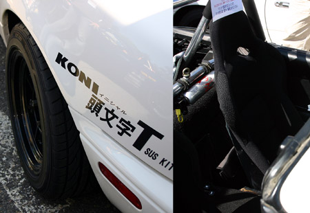 さてお次は、ステージさんです。1001号と1028号を引っ提げての参加ですね。とにかく今回の目玉は 1028号が履いているハヤシでした(^^) いいツライチ加減です。見た目も渋いしこれ良いなぁ〜 って感じですね。個人的にはスポークの中心は一本地のシルバーが通ってると最高なんですけども。 …いや ワタナベ気に入ってるんで換えませんよ? ホントだぞ? …ハヤシ…かぁ…<(;−、;) それとオリジナルバケットシートですね。コレは特注の幅の広いモノなんですが、カーボン製でした。 オレの買ったのは、特別限定のFRPなんですが、オレの買ったの以降一台も出てないそうな…?? ドコにも宣伝出してないんですから 当たり前のですって(笑) カーボンはラインナップ入りかな? ココではシートの使用感等の話をちょこっとしてからお暇しました(^^; ホントはいっぱいお話が あったんですが、T社長の二日酔い具合が例年通りだったので退散(笑) >まだ普通に酔ってるそうな(笑) |